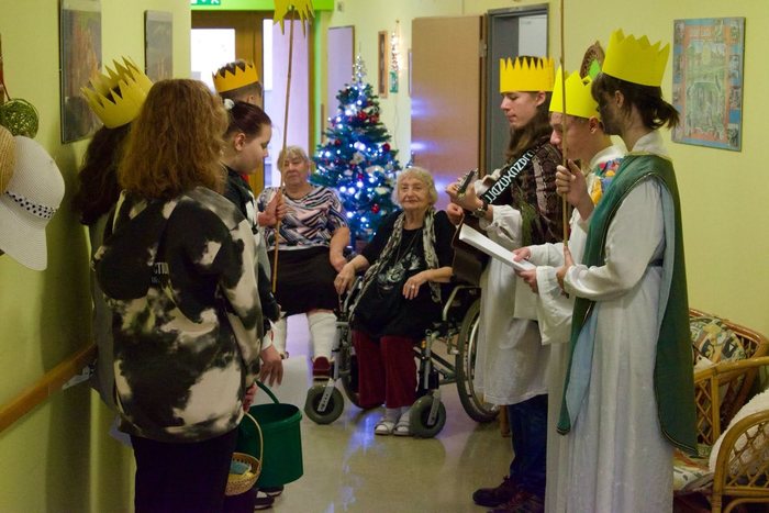 I letos jsme prošli v kostýmech tří králů ve dvou skupinách celý velký areál Domu seniorů, zazpívali jsme za doprovodu kytary tradiční píseň „My tři králové“ a k novému roku přidali ještě píseň „Den přeslavný".
